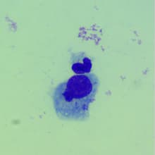 4개월된 먼치킨 고양이가 옥길아라동물치료센터에 내원했습니다. 아이는 심한 결막 부종, 눈물, 눈곱 증상이 있어 보호자분과 함께 내원하였습니다. 원인을 찾기 위해 도말 검사를 진행하였습니다. 도말 검사 결과 봉입체로 생각되는 양상이 다수 발견되어, 클라미디아 결막염으로 진단되었습니다. 이에 맞는 항바이러스 안약 및 적절한 항생제를 투여 조치 하였고, 집에서 관리가 가능하도록 자세히 안내드리고 모니터링을 진행하였습니다. 치료 진행 2주뒤, 아이의 눈은 깨끗하게 회복되었고, 건강한 눈으로 활동하고 있는 것을 확인할 수 있었습니다.